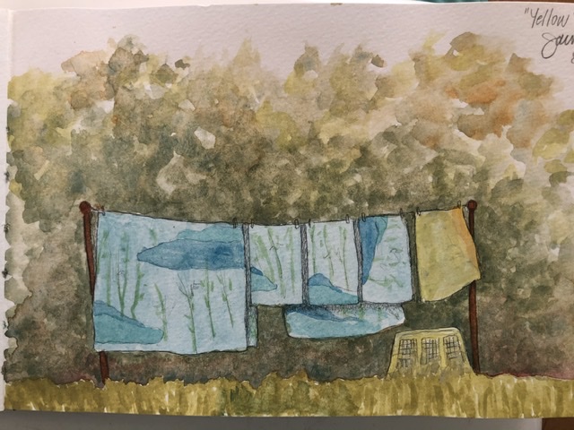 A clothesline / clotheshorse / swing-arm rack is a small wonder. It dries towels, delicates, socks and mittens, then folds-up, winds up and can be put away.