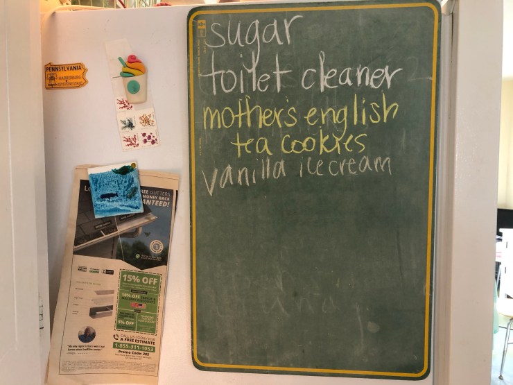 A little chalkboard keeps up with the grocery list for you. Before you leave snap a pic with your phone and delete it when you are done shopping!