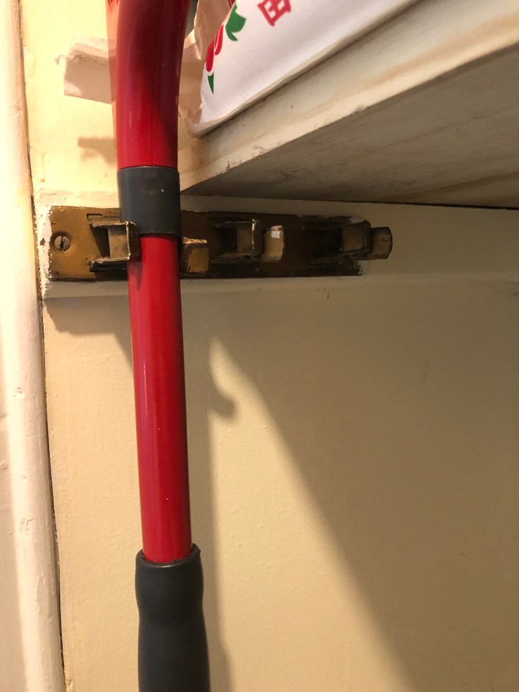 A mop / broom clip or holder keeps your pantry tidy.