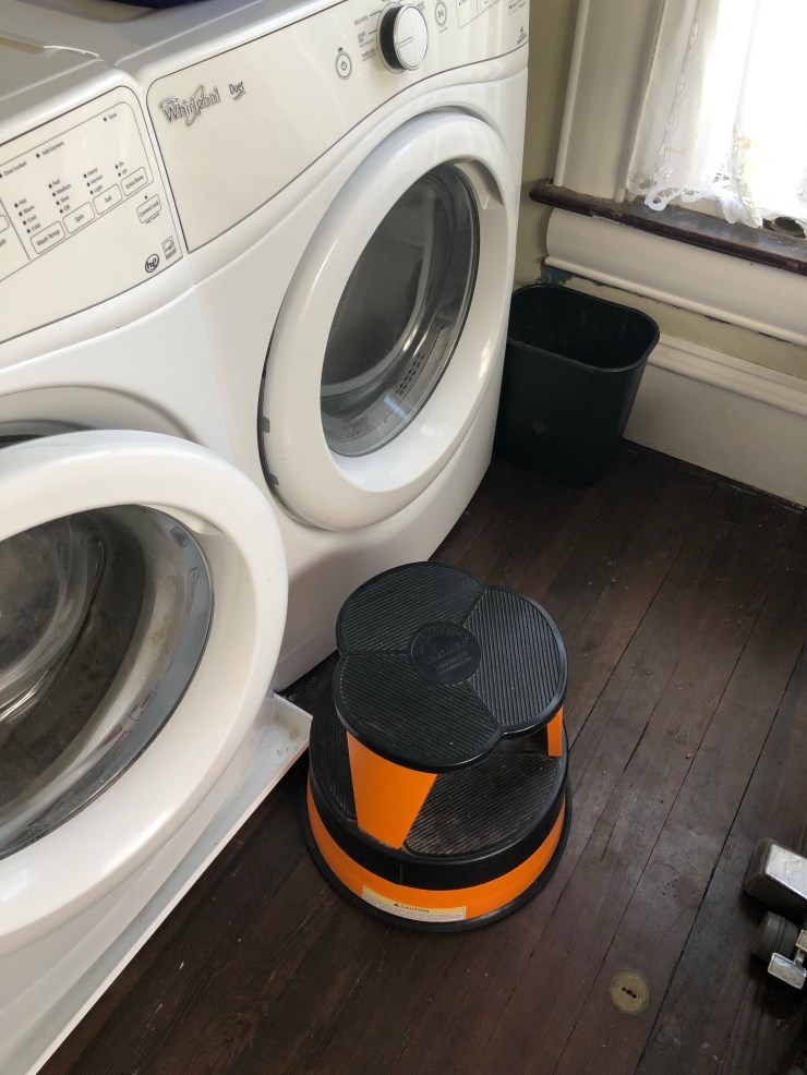 A kik-step is a great way to reach! Originally built for libraries ours has rolling casters so you can “kik” it around and lowers to feet when you “step” on it and remains stable! We use one in the pantry and one in front of our front-loading washer-dryer set for sitting on while transferring laundry.