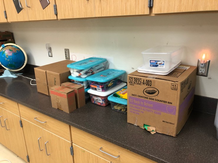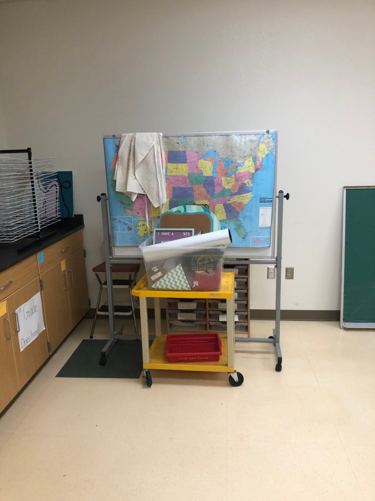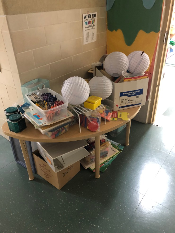 After moving first grade out of my art room I was able to unpack from moving art stuff over from my other art room. I also ruthlessly went through everything and made a donation table outside my door.