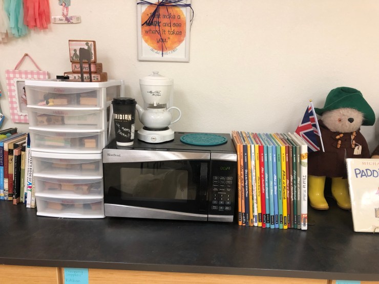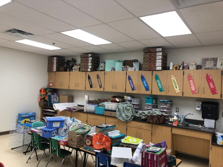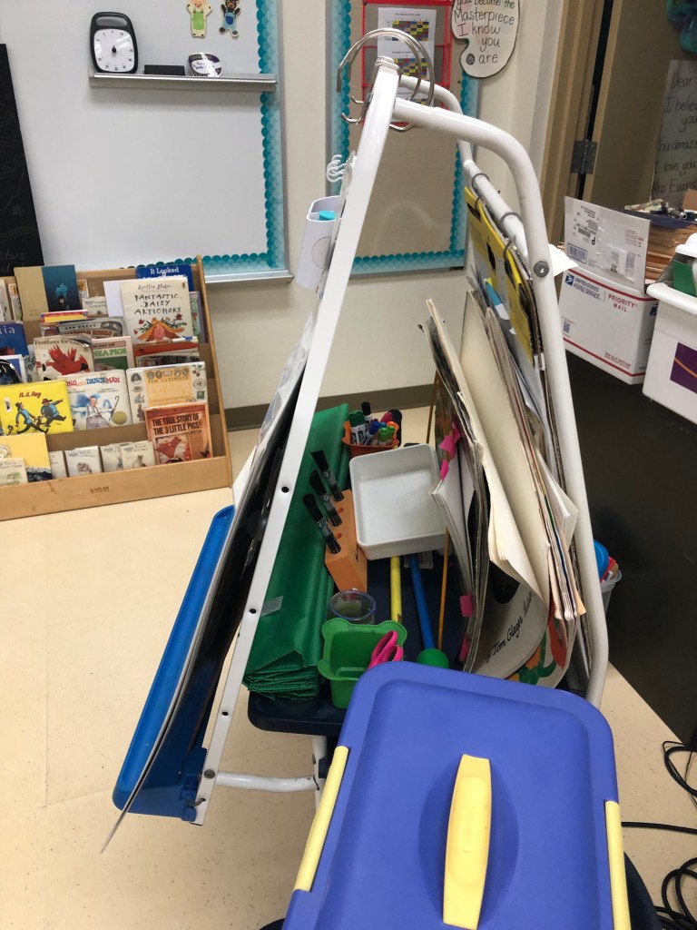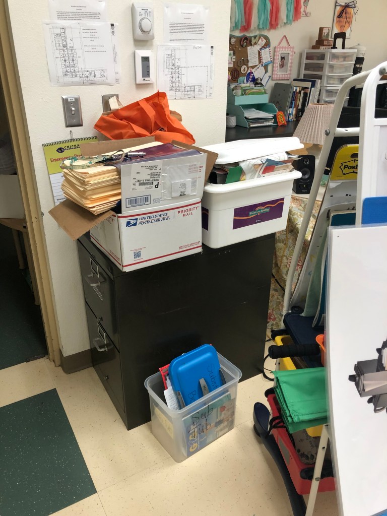 For two years I stored my first grade teaching materials on one side of my room at my early childhood center. This worked out well as the space wasn’t being used for anything else. I had another classroom I taught in in the mornings so I had storage in this other building as well.