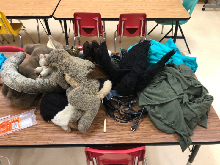 Working on the classroom tree. I moed it to put in the chalkboard, then it got broken.