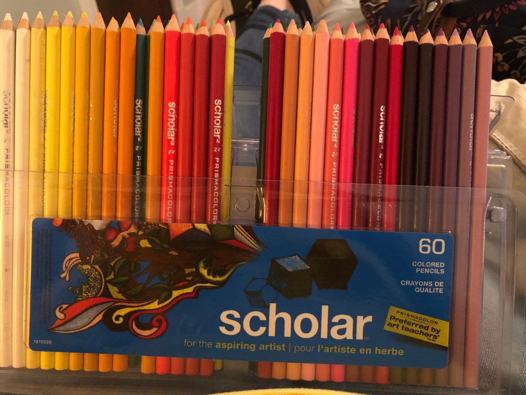 Also….bonus! I bought a lot of greens and found that Prismacolor Scholar pencils have one that is an incredibly close match! Number 320! Scholars are almost as good as Premieres/Regular Prismas. The Scholars are a little bit scratchy, but that’s all I can tell. (I had a much-loved set of scholars growing up.)