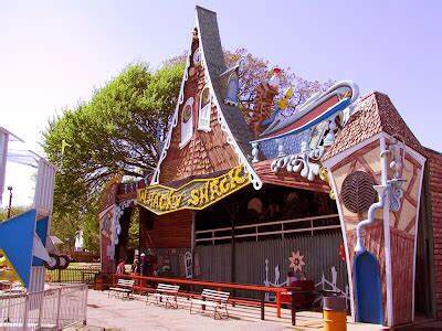 My only dark ride regret was not riding the Bill Tracy Whacky Shack at Joyland in Wichita, Kansas the day we were there. I ran out of time and tickets having spent the day riding their old wooden roller coaster named Nightmare (just like Frontier City). I didn’t care at the time, but I do wish I had ridden it now. Joyland has been closed a long time and it now abandoned. Recently vandals burned the Whacky Shack.