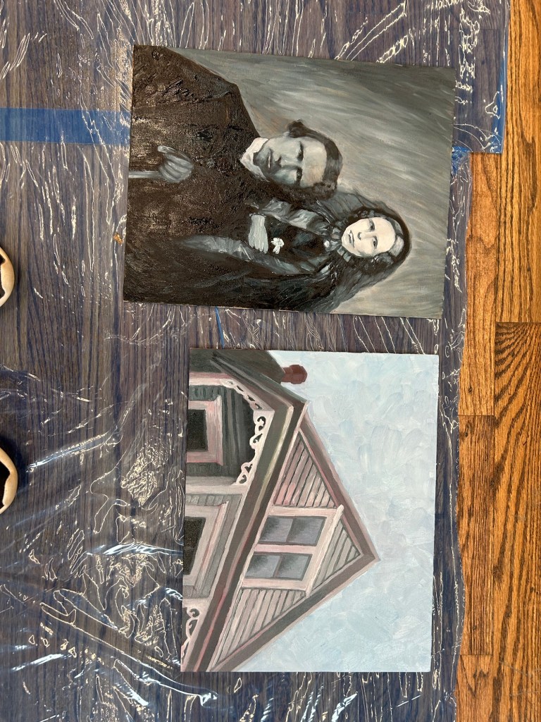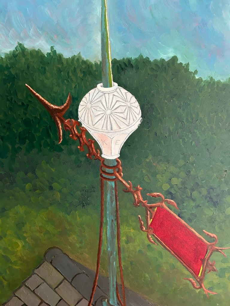 And I did! The lightning of inspiration came from a lightning rod that I purchased on E-Bay. I wanted to paint it- so I am! I am over-the-top happy to be back in my studio again, working with a medium I haven’t touched in almost a decade, learning new things and having a grand time!