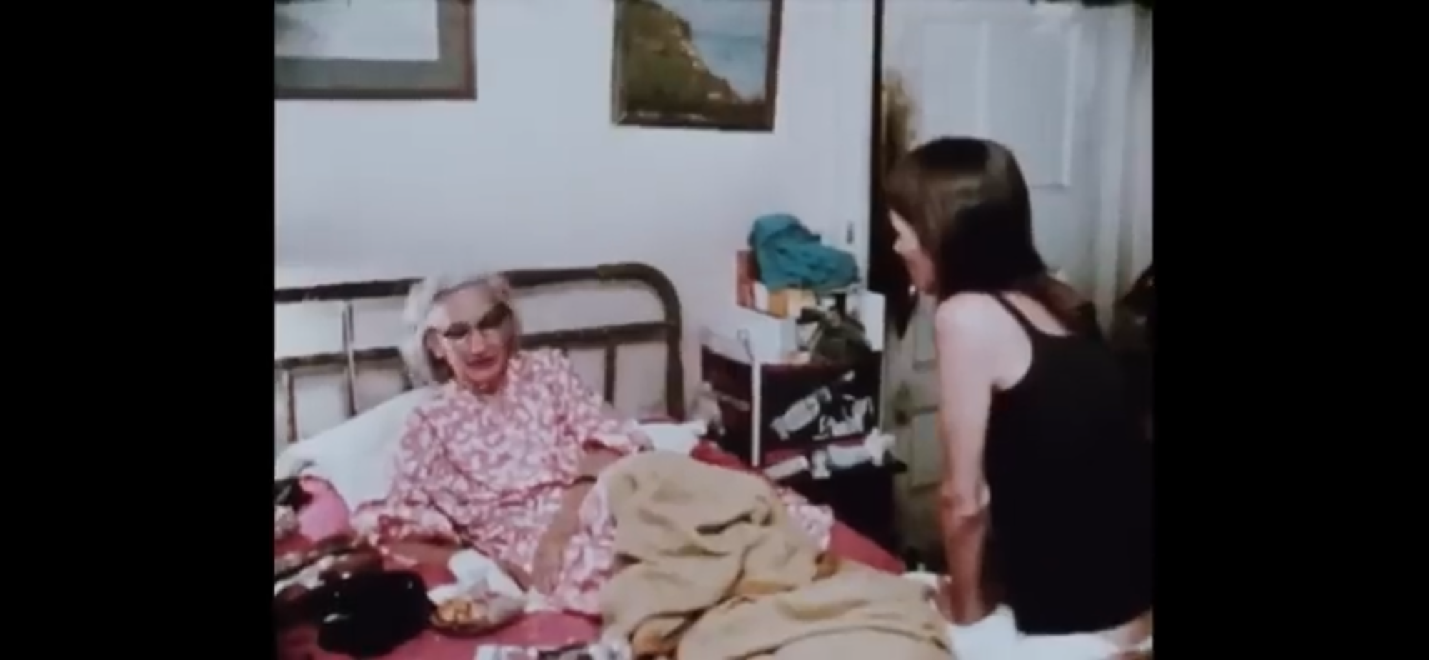 The ladies and their things were moved into a large bedroom where a lot of the footage is shot for “That Summer” while roofers, painters, carpenters, and inspectors come and go. The girls go from griping about the “redecorating” (Oh how that kills me!) to thanking Lee and playing hostesses to the extended visiting family. With a straight face they both tell the Maysles Bros. behind the camera “kitties don’t like house redecorating.” Give. Me. A. Break. I think they have parasites in their brains. Redecorating.