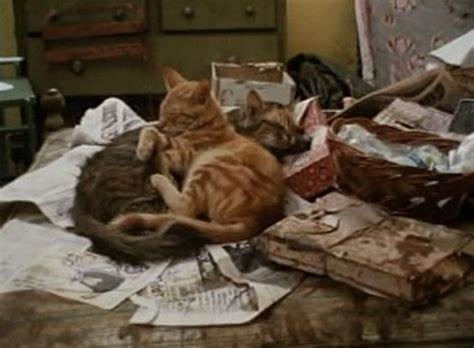 And then there is the infamous portrait of Big Edie in her heyday. The woman is obsessed with it. She even makes her daughter pose with it. Creepy. Don’t worry- it shows up in every movie made about them. I wonder whatever happened to it? My biggest shock of this series was Big Edie telling her daughter to leave a cat alone that was relieving itself right next to her potrait. “At least somebody’s doing something they want to around here.” Hmmm. You hardly ever see the floor of this place and later lil Edie has a knack for covering everything with newspapers… ewww.