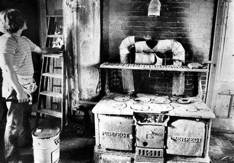 Imagine- this wood-burning stove, cold for years in that filthy kitchen pictured above. No heat was on in the house. Little Edie says the vines destroyed the chimneys and they couldn’t burn anything in their fireplaces anymore. She stated that was how they were disposing of most of their trash before.