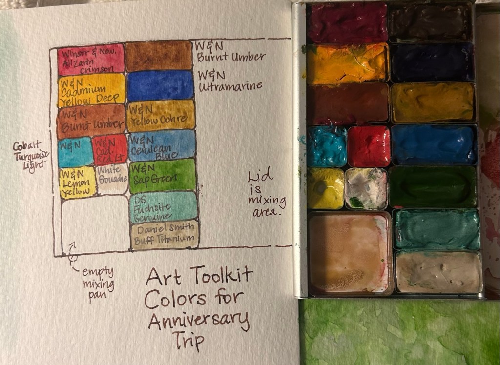It will be right when I finish my 6 month sketchbook and art journal. So I ordered 2 new black Moleskine sketchbooks, plus a landscape watercolor block. I still have plenty of room in my big and little Moleskine watercolor journals so I’ll take those too. (Hhhmmm, I am taking an awful lot of paper- probably not a great idea; very heavy!)