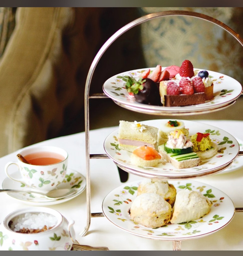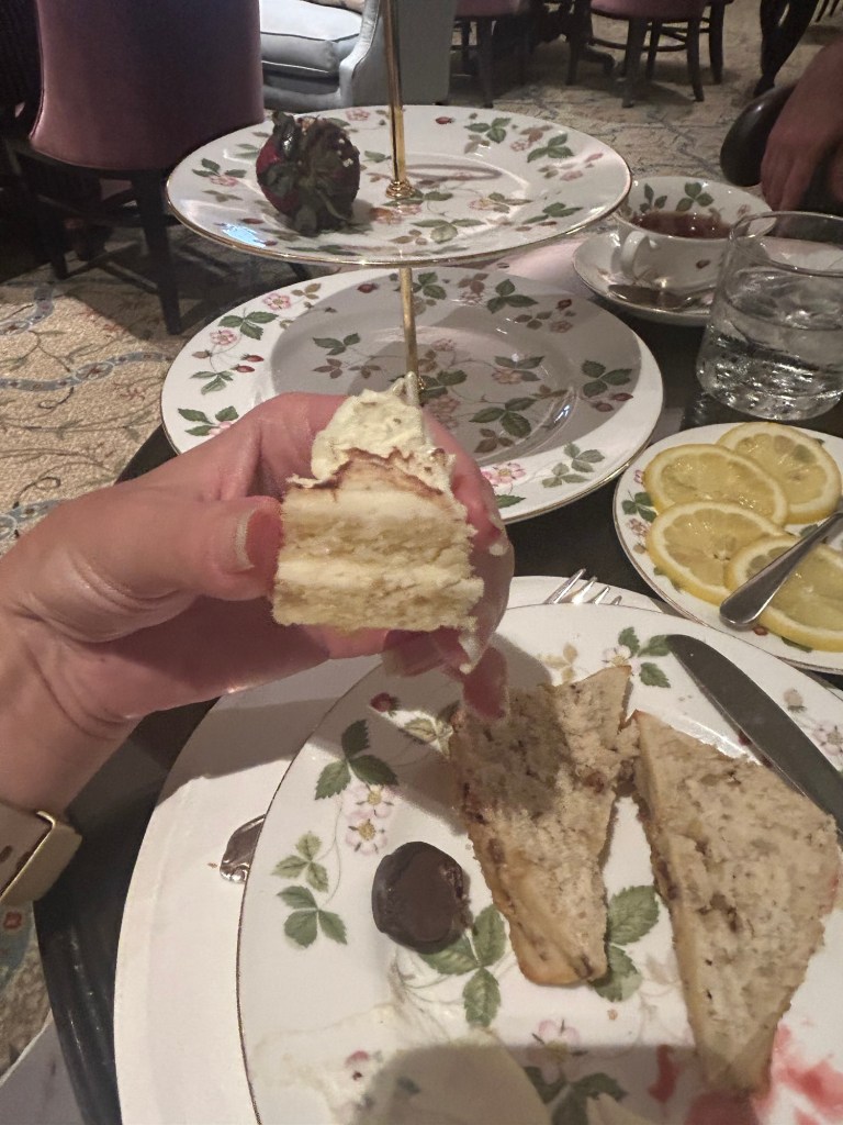 I was so inspired by our absolutely fantastic anniversary afternoon tea on our trip that I wanted to bask in the glow of that day forever. (Well, at least a while.) I already had a Wedgwood Wild Strawberry peony-shaped teacup and saucer, but my brain wanted more. Even second-hand these pieces aren’t cheap, but I had a plan. I don’t however, have a plan on where to put/store it…but my “dish-ease” doesn’t care! Lol