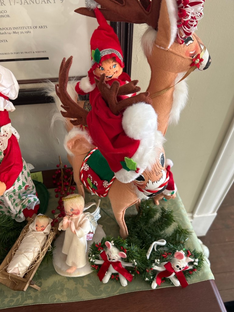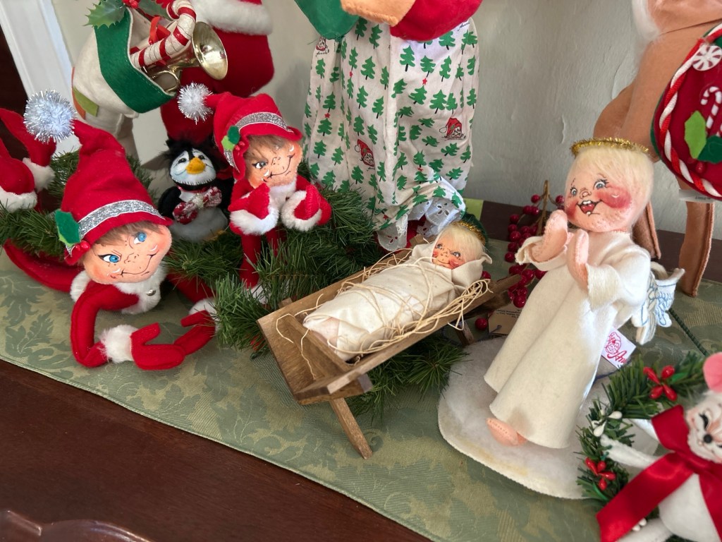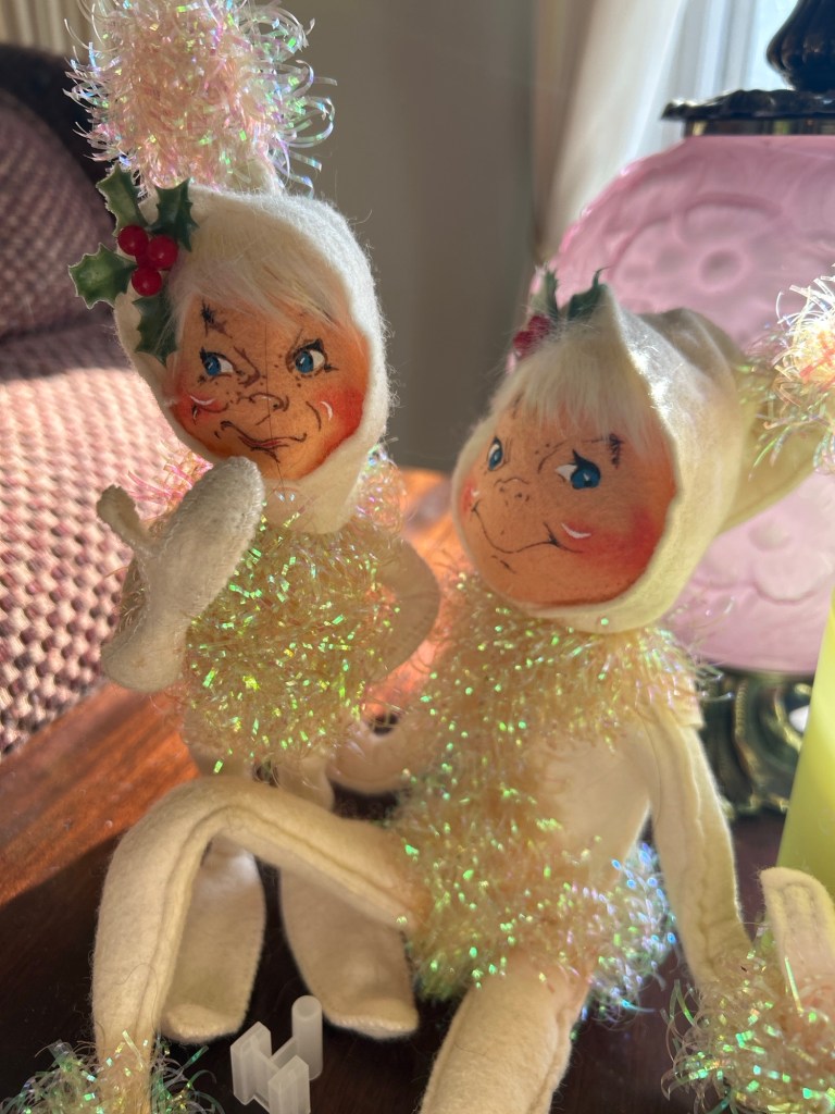 After the library out came the bags of Annalee characters! These guys have been favorites since I was a little child and played with some elves my mom had. I got a Mrs. Clause for my Santa last year and it was so good to see her dancing with him again.