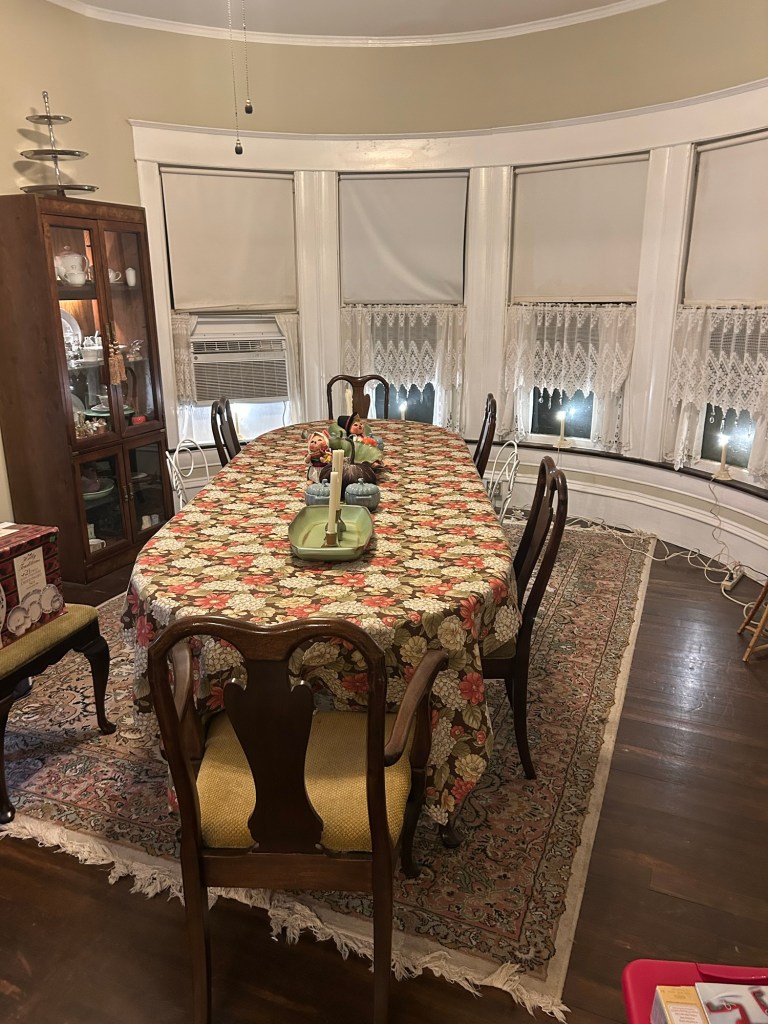 My favorite room to dress right now is the dining room. I did this weird thing where I set the table sideways when it has all three leaves in it so everyone has room to walk around and scoot their chairs around. Let me tell you- the house liked it! It’s kind of nuts, but it does! And since we have our big group of motorcycle friends over often, and our family is getting bigger, I have just left it like that!