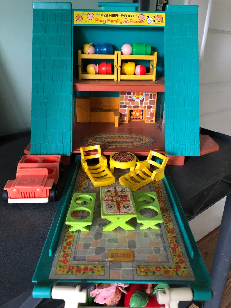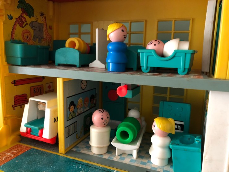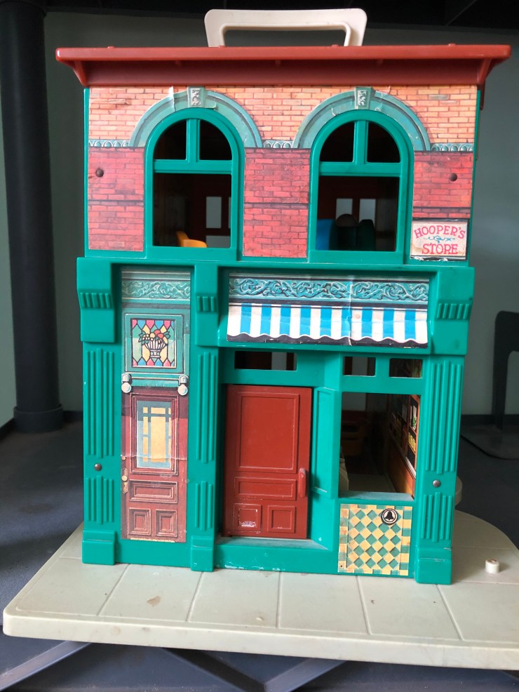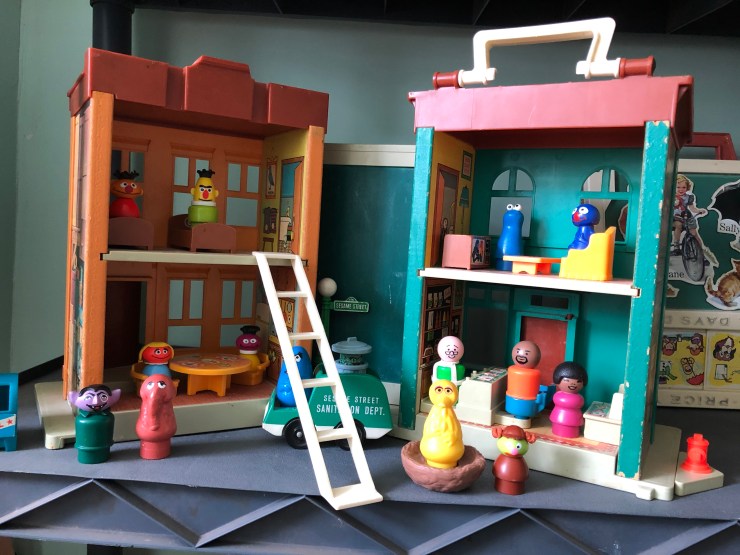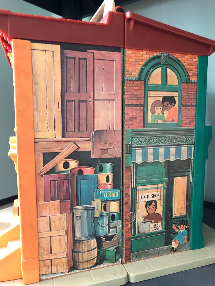 The Sesame Street house #938 is one of my best playsets and I recently finished finding the last of the extra people to go with it. My favorite things are the architectural design, the lithos (stickers) inside and out and how cute the Little People are.