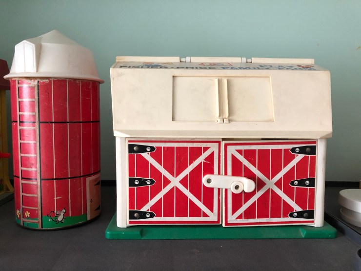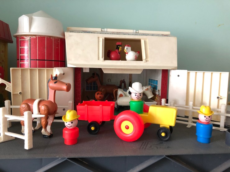 The Play Family Farm #915. I really like that the chickens can sit on the fence and the silo opens to hold the accessories. Plus the barn has a painted “barn star” on one side.
