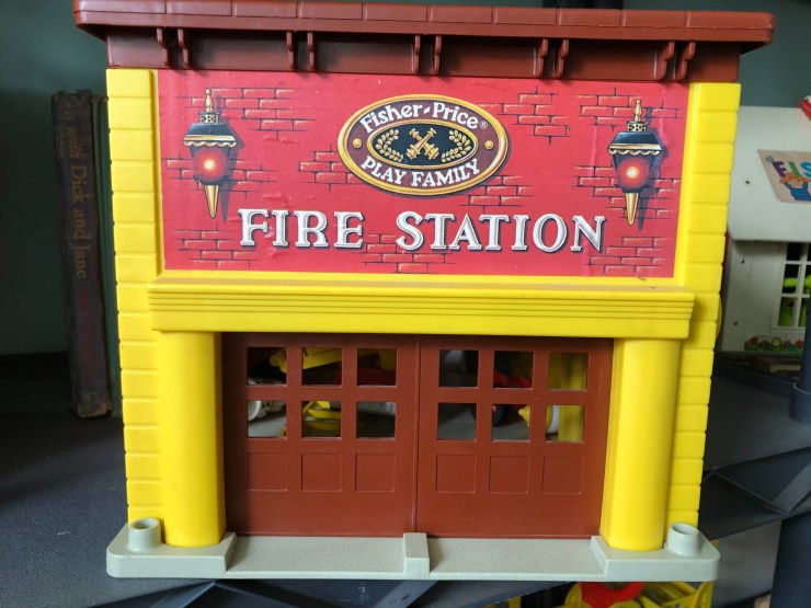 The #916 Zoo and the #928 Fire Station are next. The Zoo is so great and the spider monkeys are one of my all-time most-loved accessories. Even though it is a lot more plastic, there are still a lot of thoughtful details in this set! The Firehouse garage door has a bell that rings as it opens and a clicker as it closes. Plus the famous Play Family dog shows up as a dalmatian! Squeee!